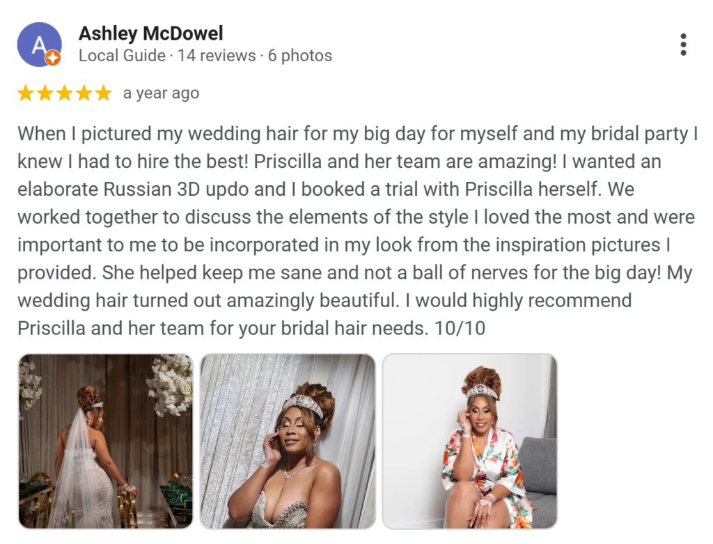 2. Our hairstylist and makeup artists are highly trained with over 40 years combined experience providing flawless wedding hair and makeup for black women.